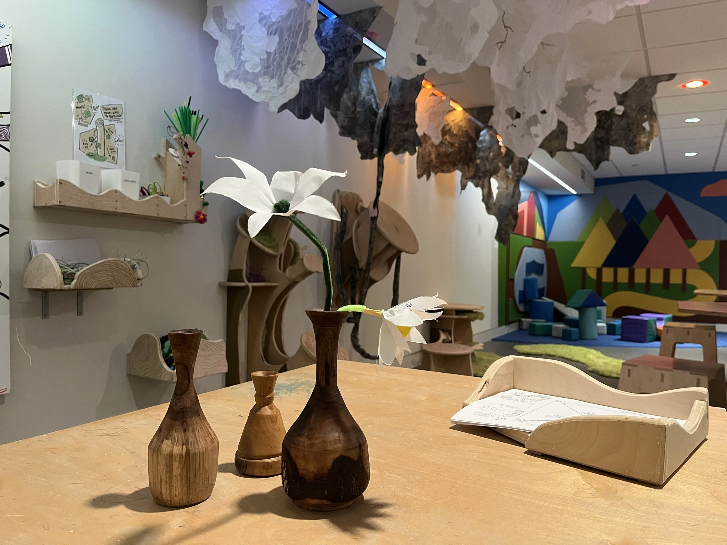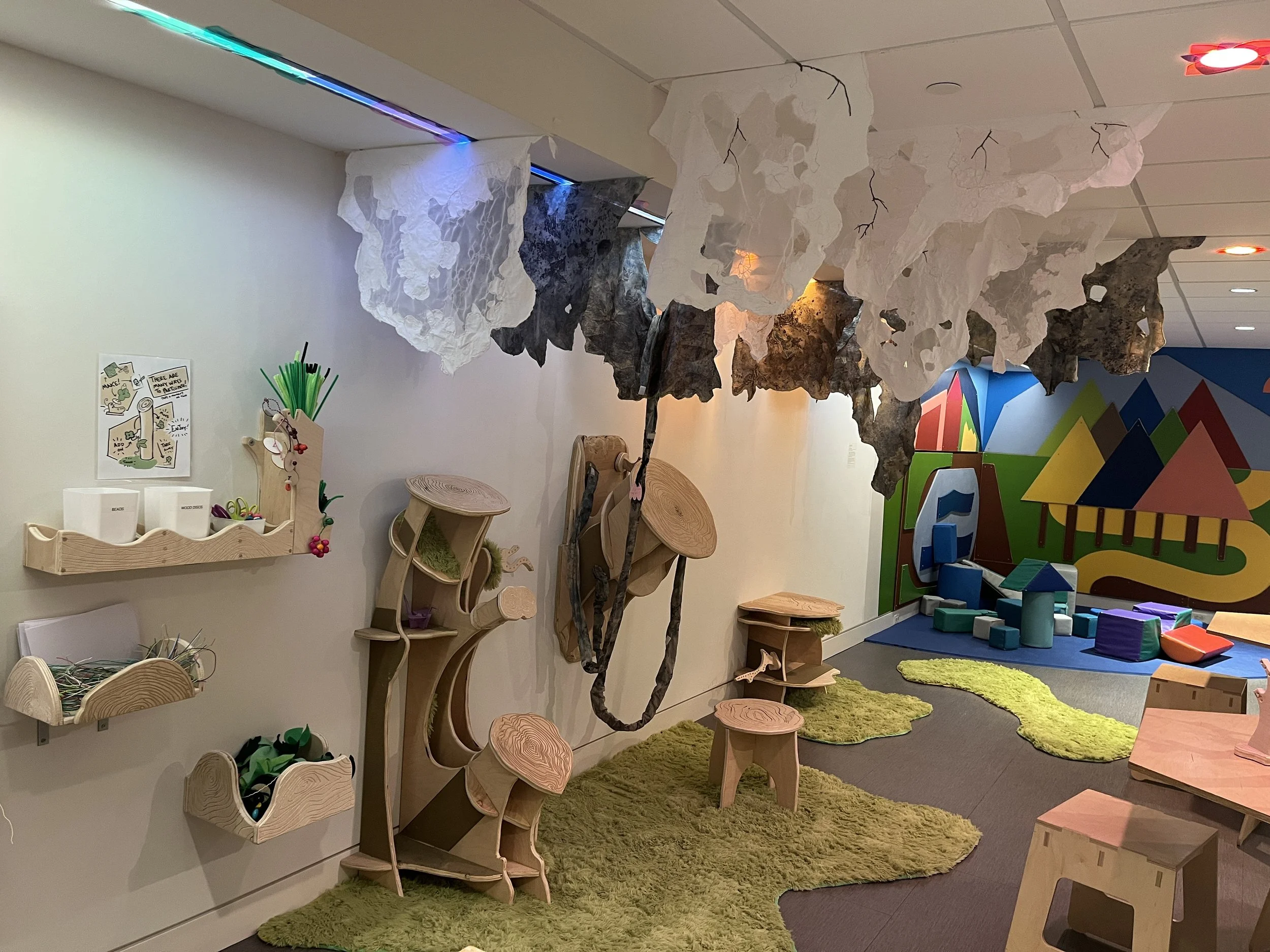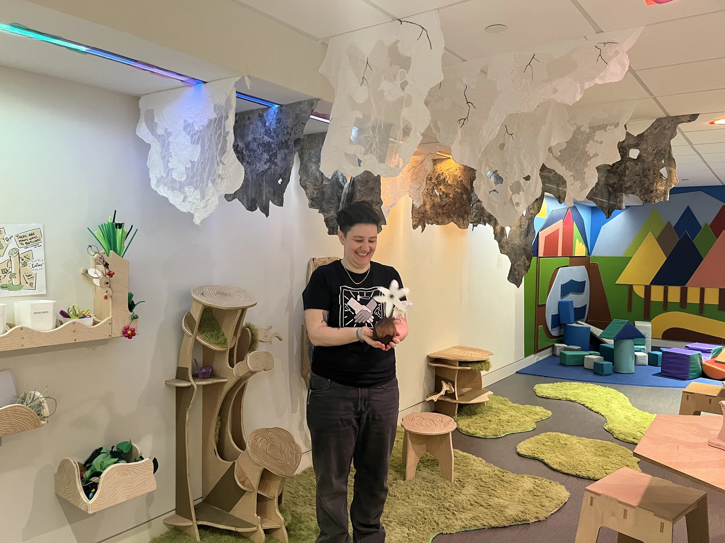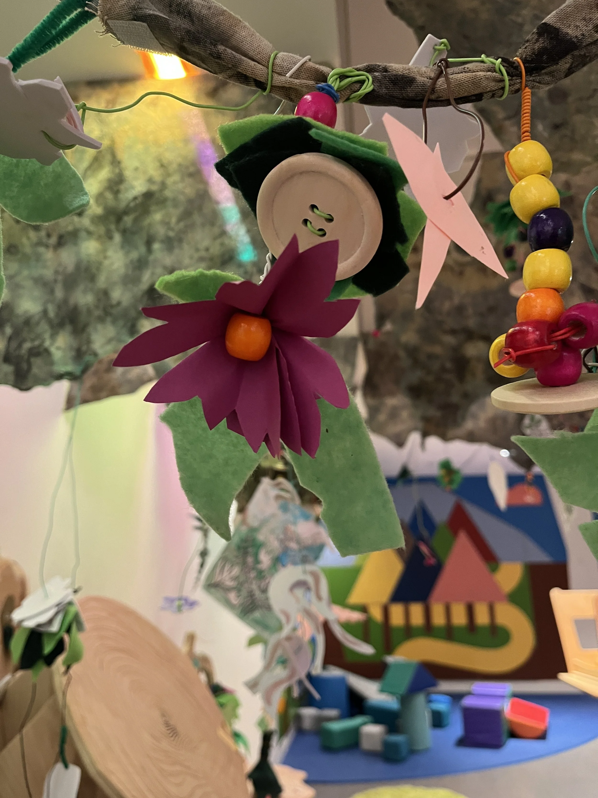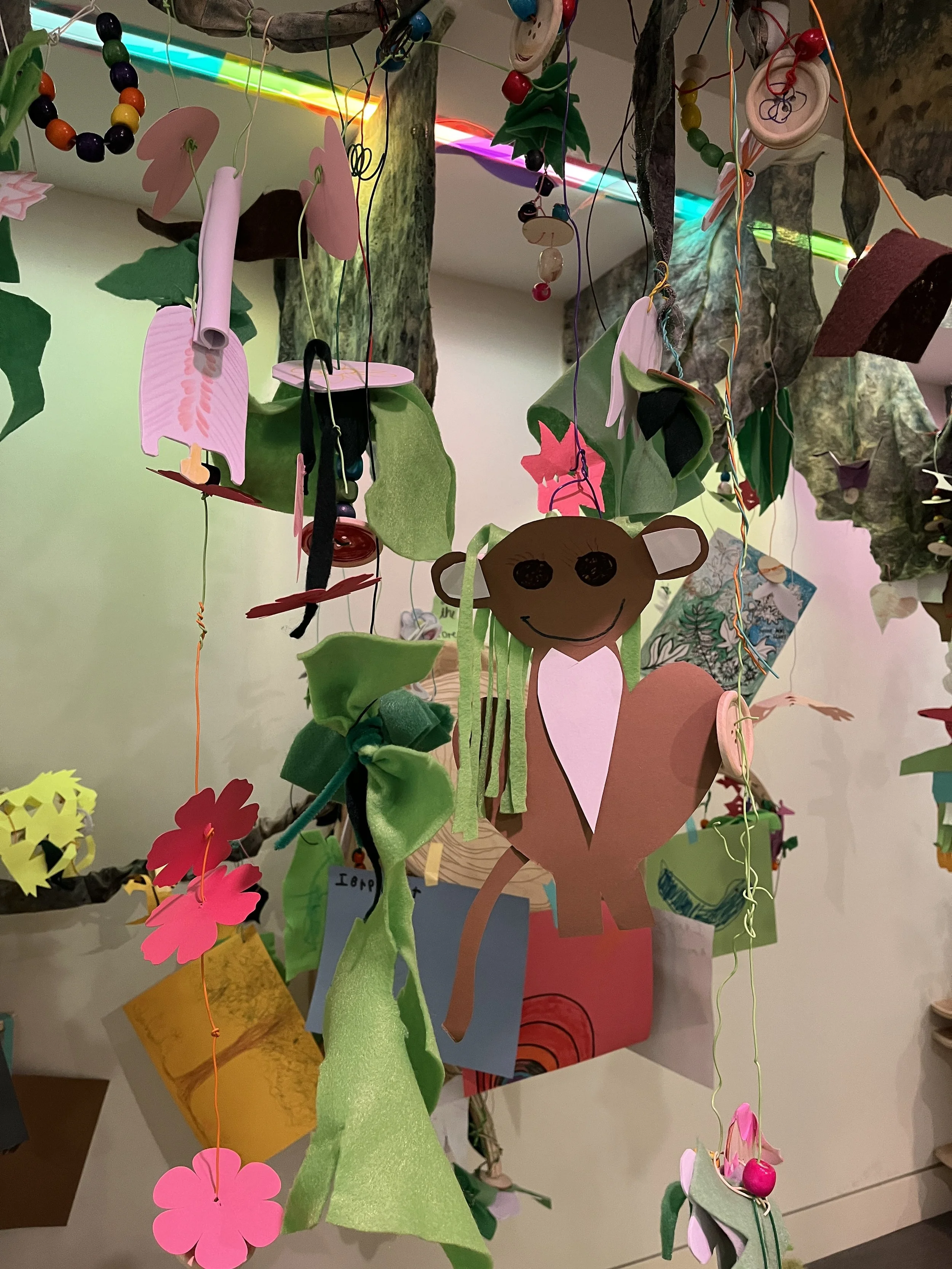 Forest FEELS (2024) invited viewers to reimagine the forest and celebrate its life through creative contribution, and post-Helene, it became that and so much more. The tree stumps suddenly took on a different, weighted, and grim meaning. Visitors to Forest Feels (2024) responded accordingly – with grief, and with hope. Words of encouragement, love notes to the forest, rainbows, hearts, and critters made of felt flooded the ArtPLAYce. The artist, the Museum staff, and the public documented these creations. Thank you for taking the time to express yourselves!