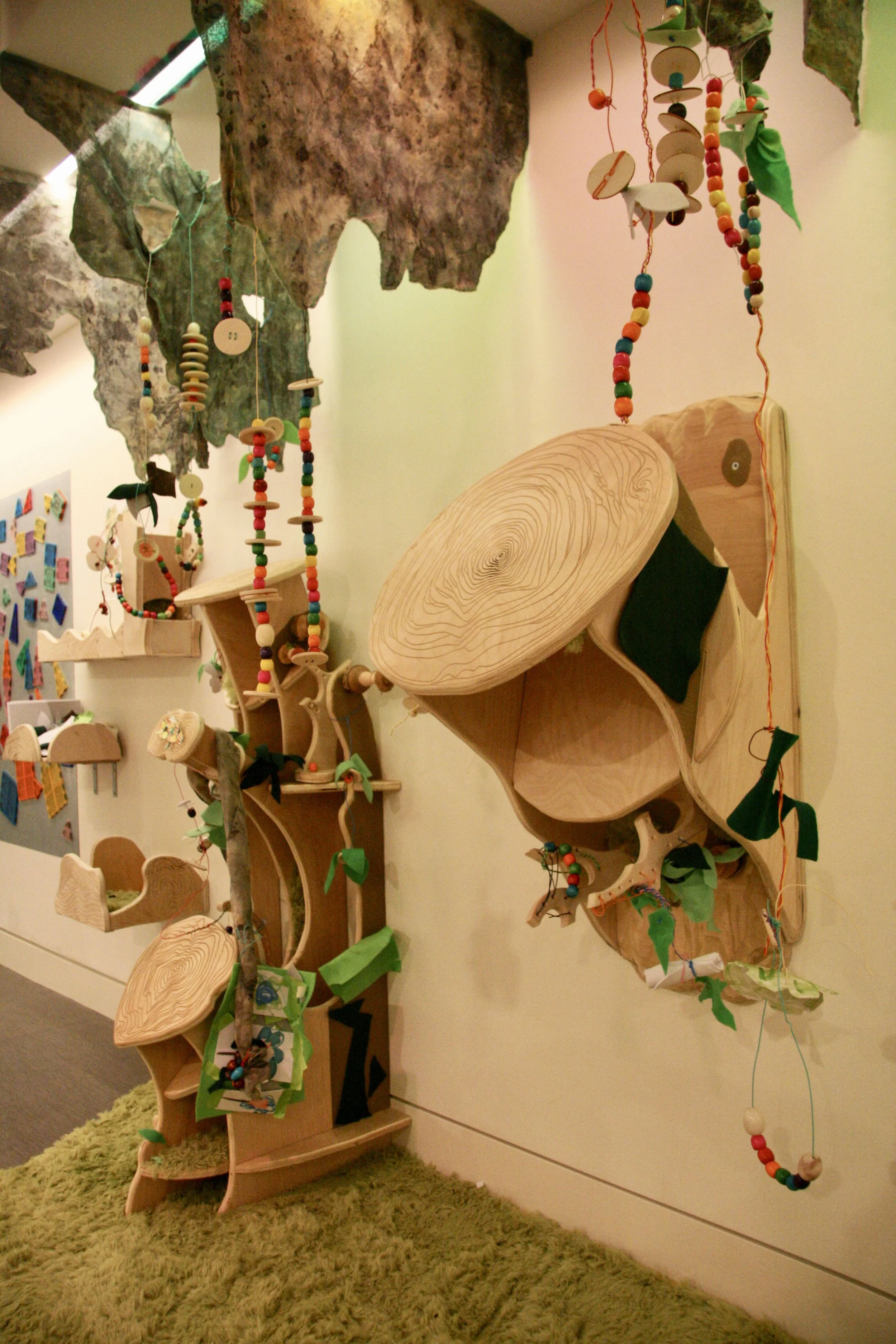 Plywood, eco-printed muslin, velcro, wire, paper, felt, found objects, visitor contributions